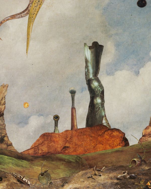 Décadas después, Héctor Delgado (Lima, 1986) trabaja desde el archivo y el impreso, desde aquello que otros descartan. Fotógrafo formado en el Centro de la Imagen, ha desarrollado una práctica centrada en el fotomontaje análogo y la animación stop motion, además de impulsar el proyecto editorial Grumos y autopublicar Eclipse de Sol, libro finalista en ferias como Felifa y Tinta. Sus collages inéditos operan como ecosistemas donde el fragmento deja de ser ruina para convertirse en posibilidad: lo marginal se reorganiza y muta en nuevas formas de coexistencia. Actualmente trabaja en la postproducción de su primer largometraje animado, Los Hijos del Sol Negro.